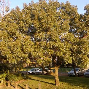 Pod-mahogany / PeulmahonieA very attractive medium-sized tree with a short trunk and widespreading crown. The glossy dark green leaves turn ino an attractive yellowish colour in the Autumn months.